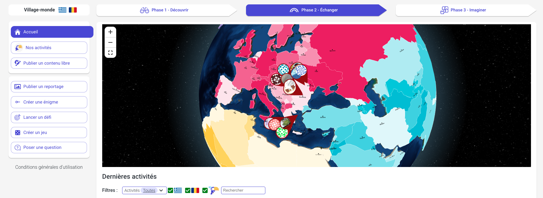 Les échanges numériques sur 1Village se déroulent sur une année scolaire et plus précisément entre octobre et juin. Ils sont divisés en 3 phases